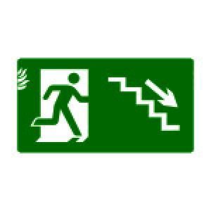 Placa de sinalização fotoluminescente indicativa de rota de fuga adiante em pvc expandido, com dimensões: 30 CM X 15 CM